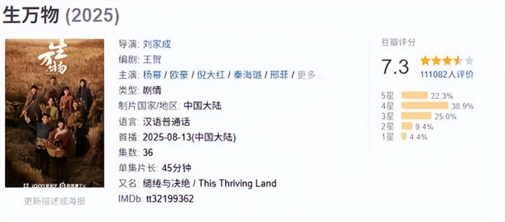 但本以为该剧会一路高开高走,圆满收官,没想到结局却因为烂尾影响口碑,导致豆瓣评分从最初的7.5分降到了7.3分,实在是令人意外。